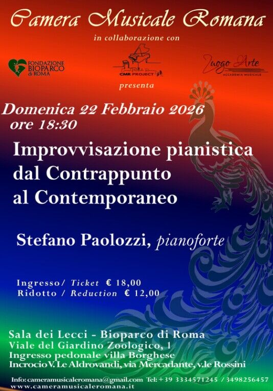 Domenica 22 febbraio alle ore 18:30, presso la Sala Lecci del Bioparco di Roma, il pianista e organista Stefano Paolozzi presenterà “Improvvisazione pianistica – dal Contrappunto al Contemporaneo”, un percorso sonoro originale che attraversa la tradizione contrappuntistica per aprirsi ai linguaggi contemporanei.