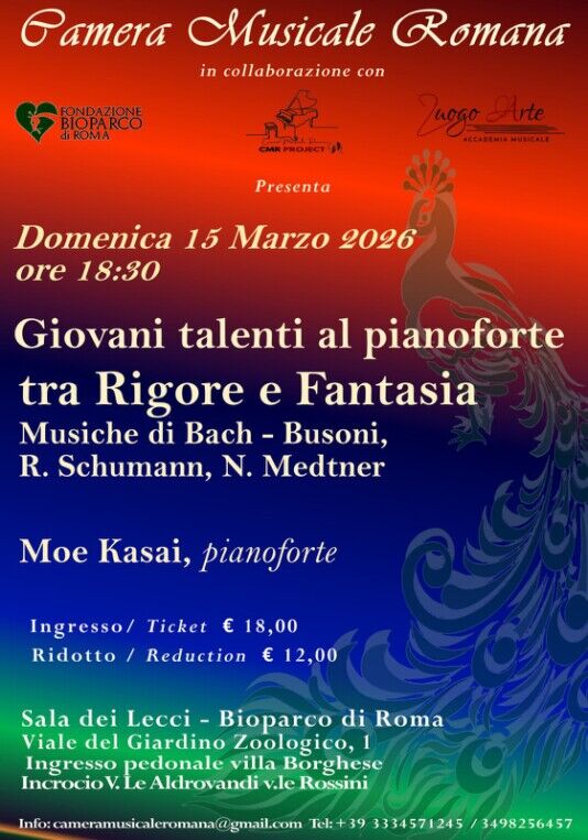 Domenica 15 marzo alle ore 18:30 la Camera Musicale Romana presenta un nuovo appuntamento della rassegna dedicata ai giovani pianisti che si sono distinti nei principali concorsi internazionali. Protagonista del concerto sarà la pianista giapponese Moe Kasai, giovane interprete di grande sensibilità e solida formazione.